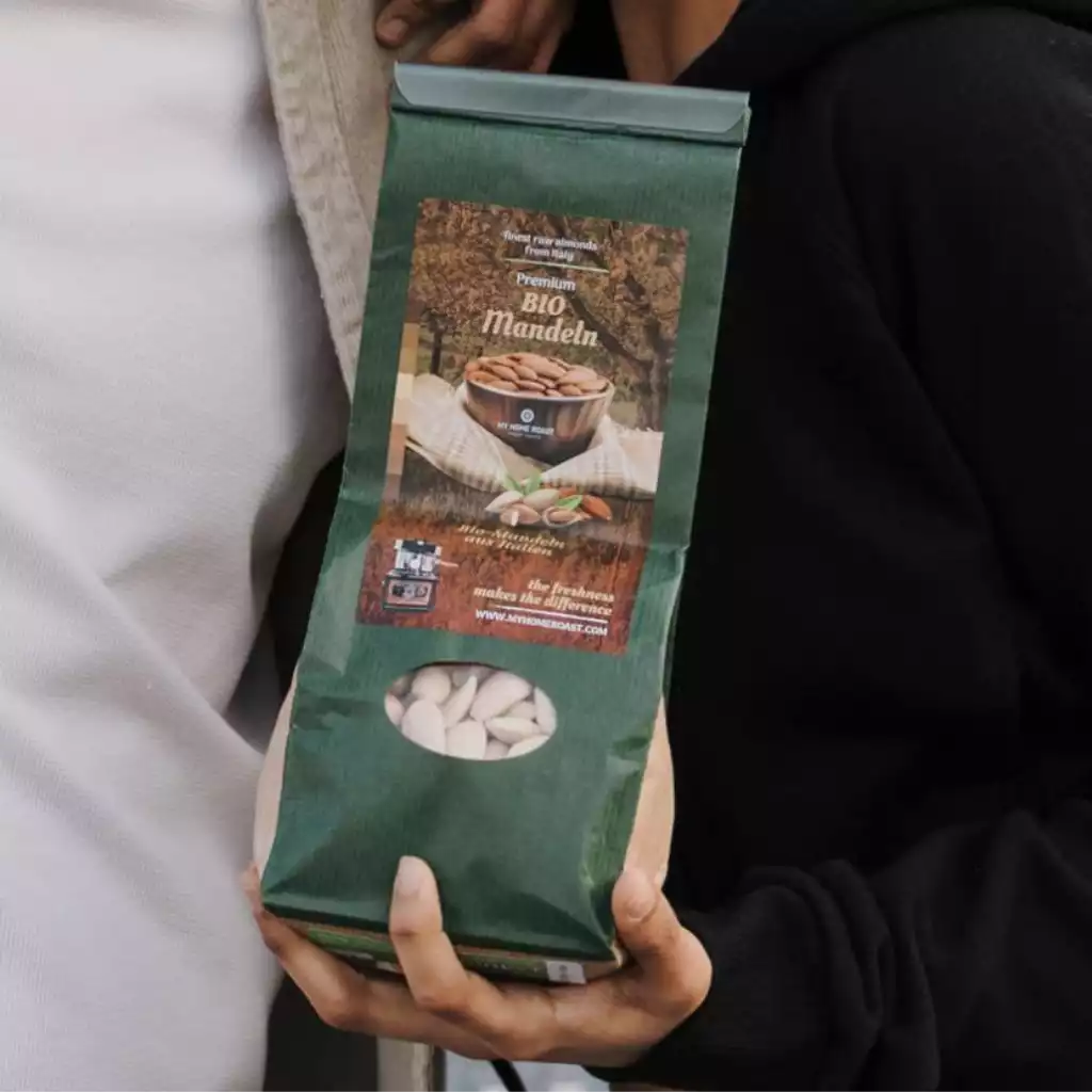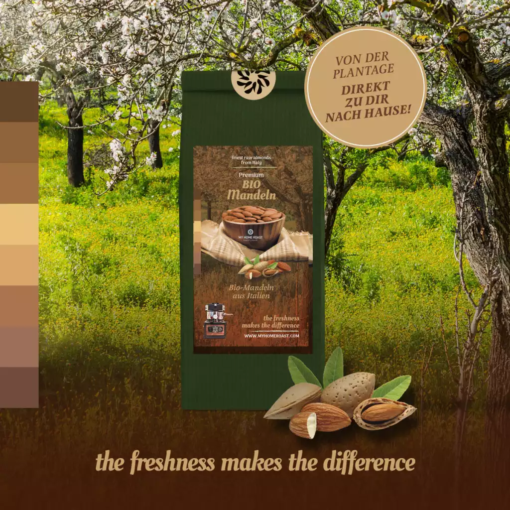 Unsere Bio-Mandeln aus Apulien enthalten eine Vielzahl an hochwertigen Nährstoffen wie Calcium, Magnesium, Kalium und verschiedene Vitamine sowie ungesättigte Fettsäuren. Sie gelten als Superfood aus Europa. Sie werden bereits geschält geliefert und können mit einem eigenen Röstprogramm einfach auf Knopfdruck geröstet werden.